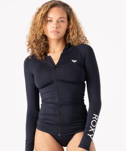 Roxy Women’s Swim & Surf New Essentials Long Sleeve Hoodie Zipped Rashguard | Bright White