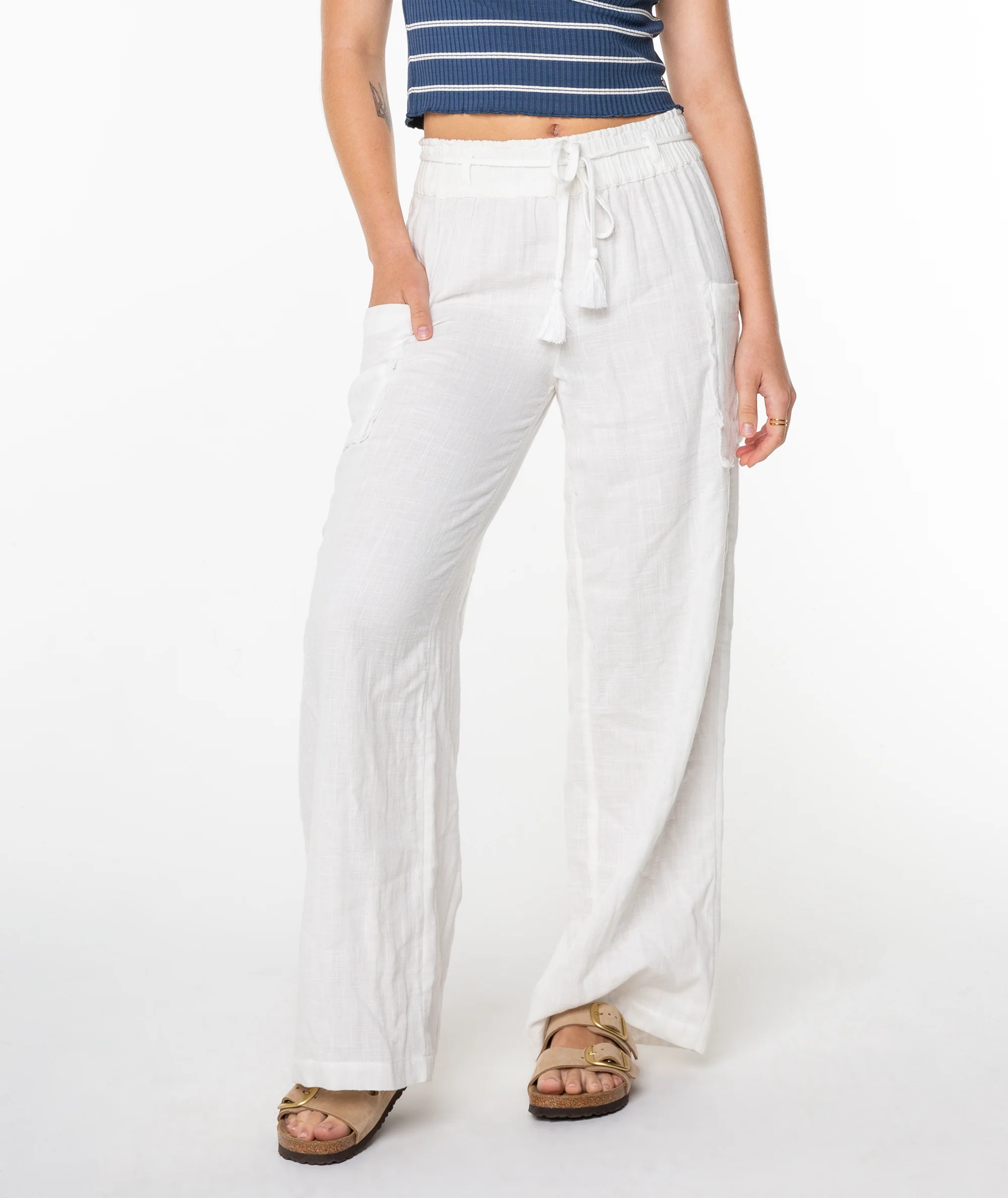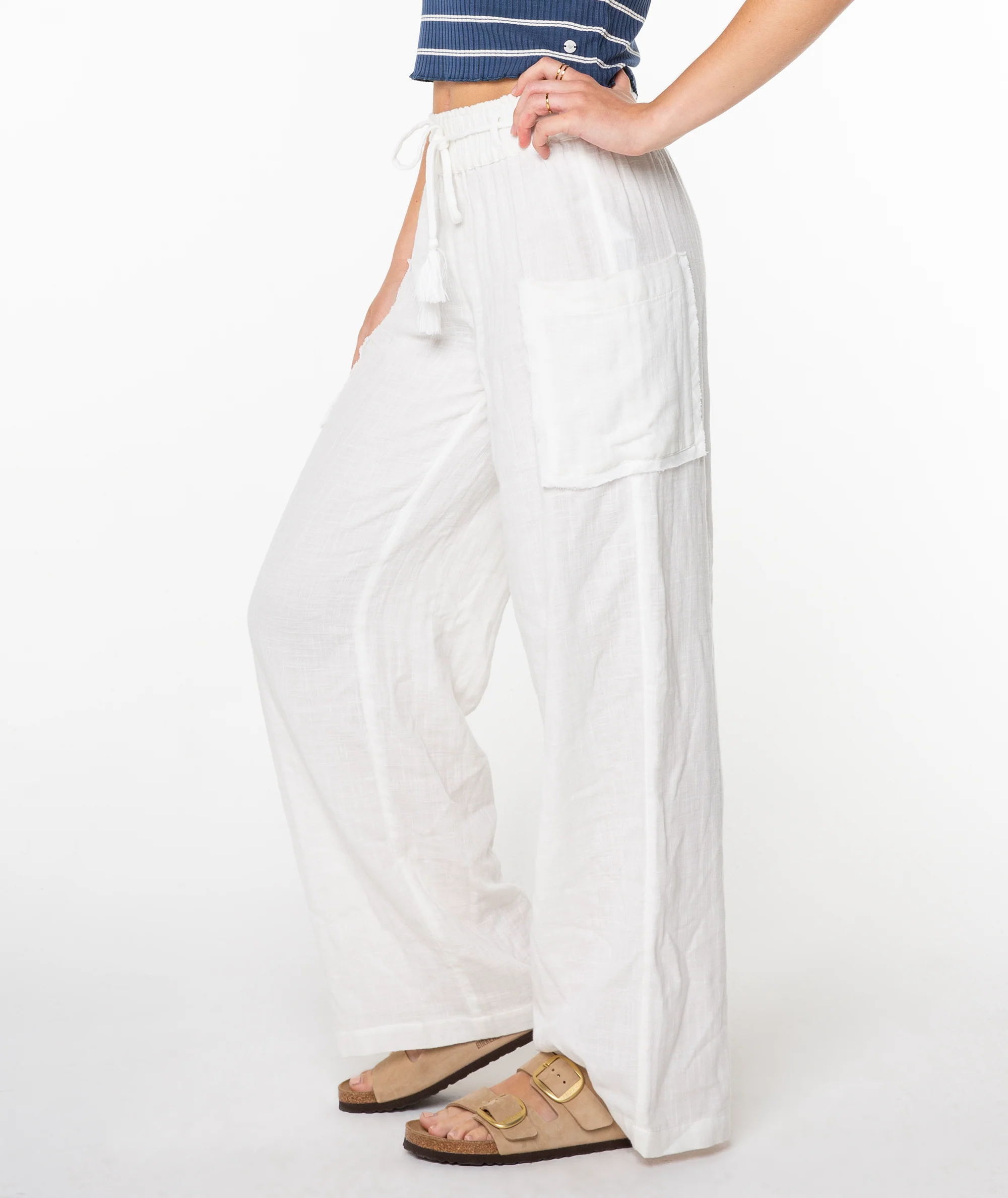 Channel all the summer vibes in the Sea Goldie pants. Featuring a relaxed fit, a drawstring waist and a cargo pocket, these gauze pants are a perfect addition to your summer rotation.