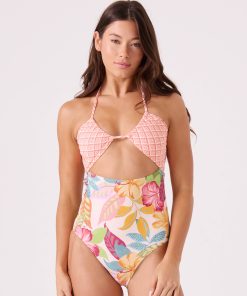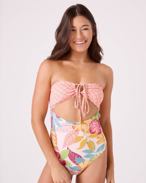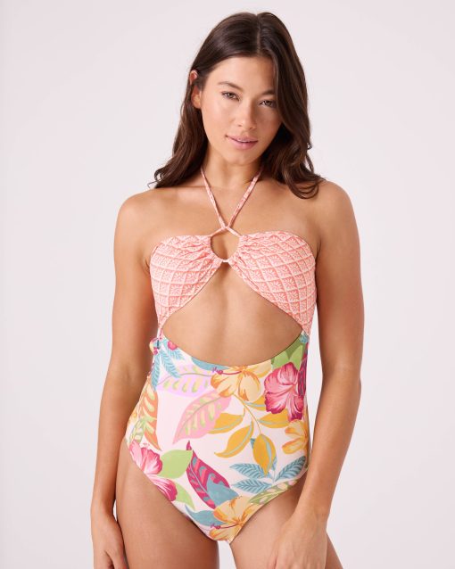 Feel the heat in our Hot Tropics Peek A Boo Moderate One Piece Swimsuit. Made from soft butter fabric that feels as good as it looks. This multi-wear suit can be styled in different ways to suit whatever your preferred look is. With low support and adjustable straps it is the perfect stylish suit for lounging by the pool or catching waves.