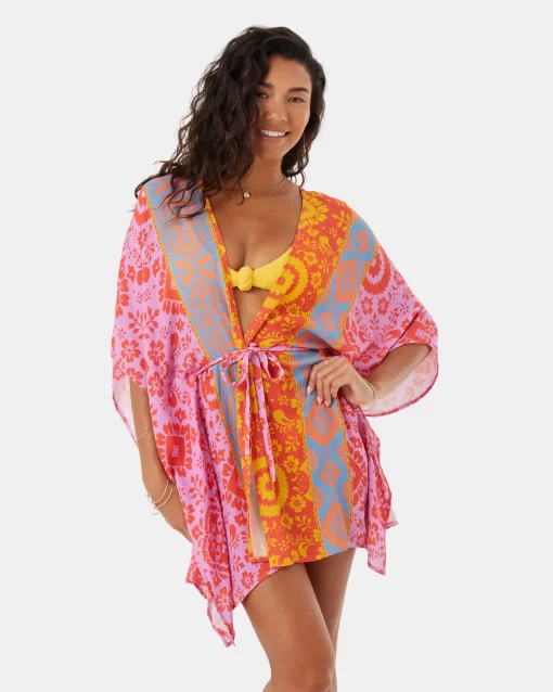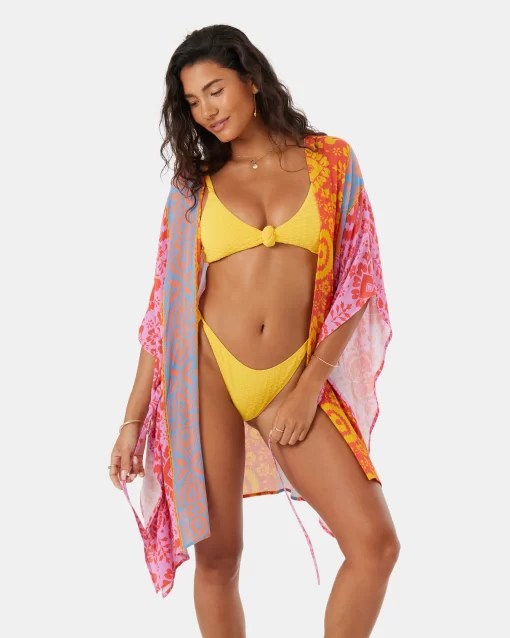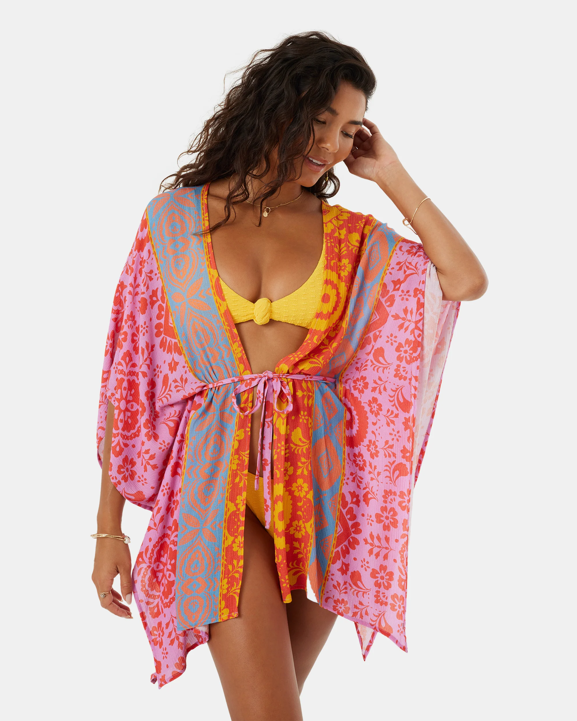 Embrace effortless style with Roxy's Wanderer Cover Up Kimono. Featuring a flowing, relaxed fit and lightweight fabric, this kimono adds a touch of boho-chic to your beach look. Perfect for throwing over your swimsuit or layering for a breezy, sun-soaked day, it offers comfort and style wherever your adventures take you.