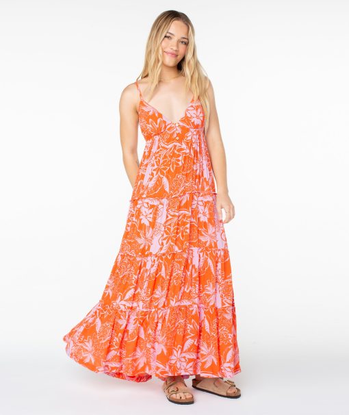 Match the summer sunset in the Warm Rays maxi dress. Featuring a gorgeous tropical print and a breezy fit, this piece makes a warm and playful summer statement.