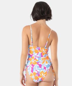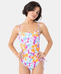 Roxy Women’s Swim & Surf Topanga Canyon Lace Up Side One Piece Swimsuit | Pastel Floral Multi